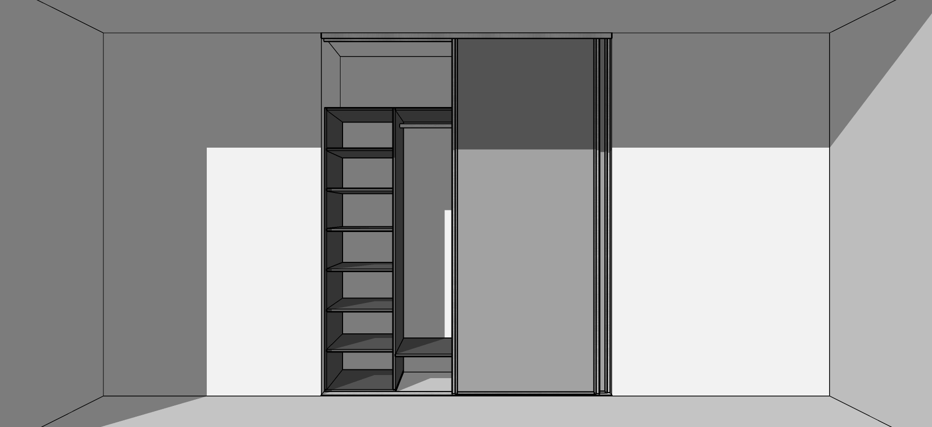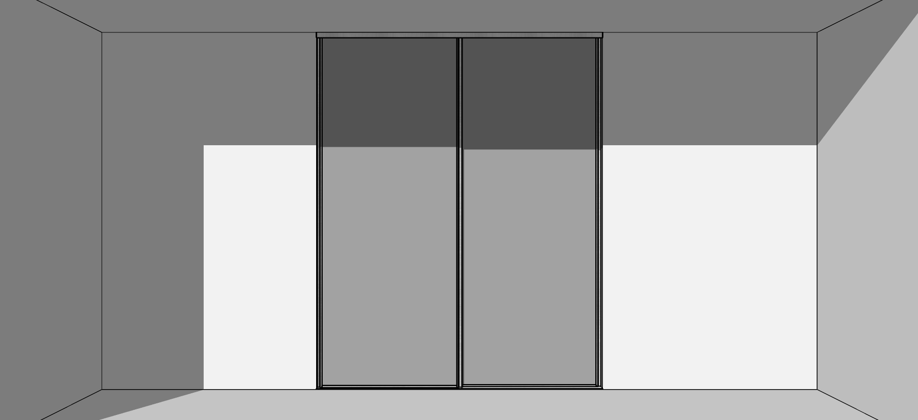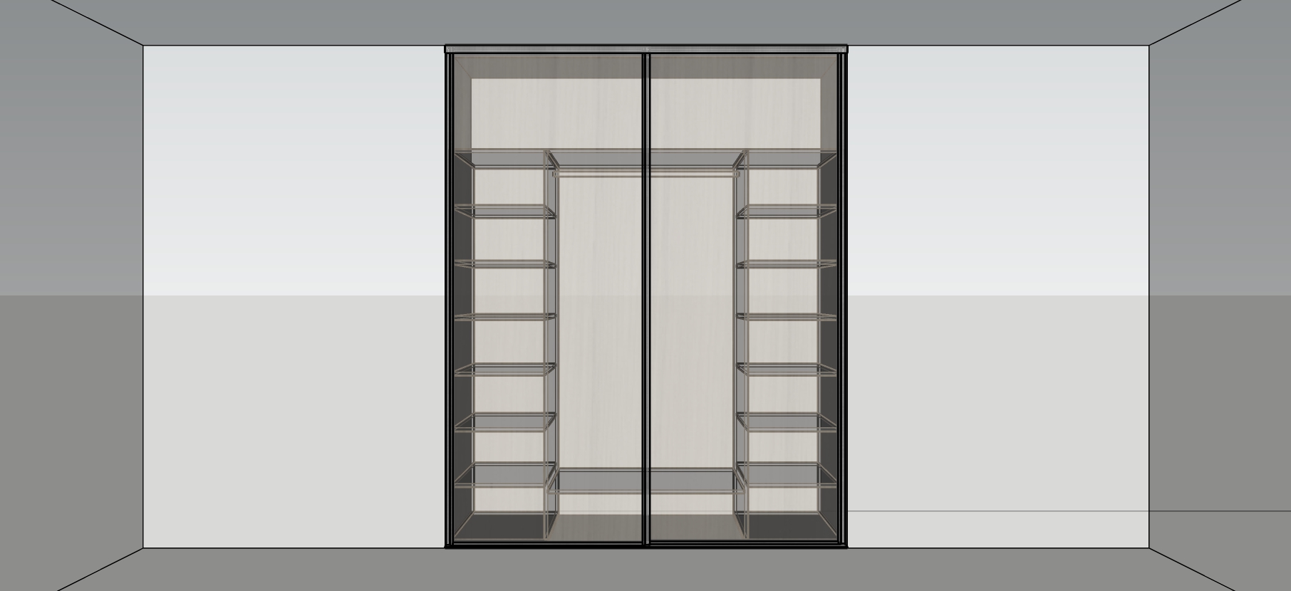 - Bīdāmo durvju komplekts ar divām vērtnēm, vadotnēm, rullīšiem un fiksatoriem. Durvīm lamināta pildījums.