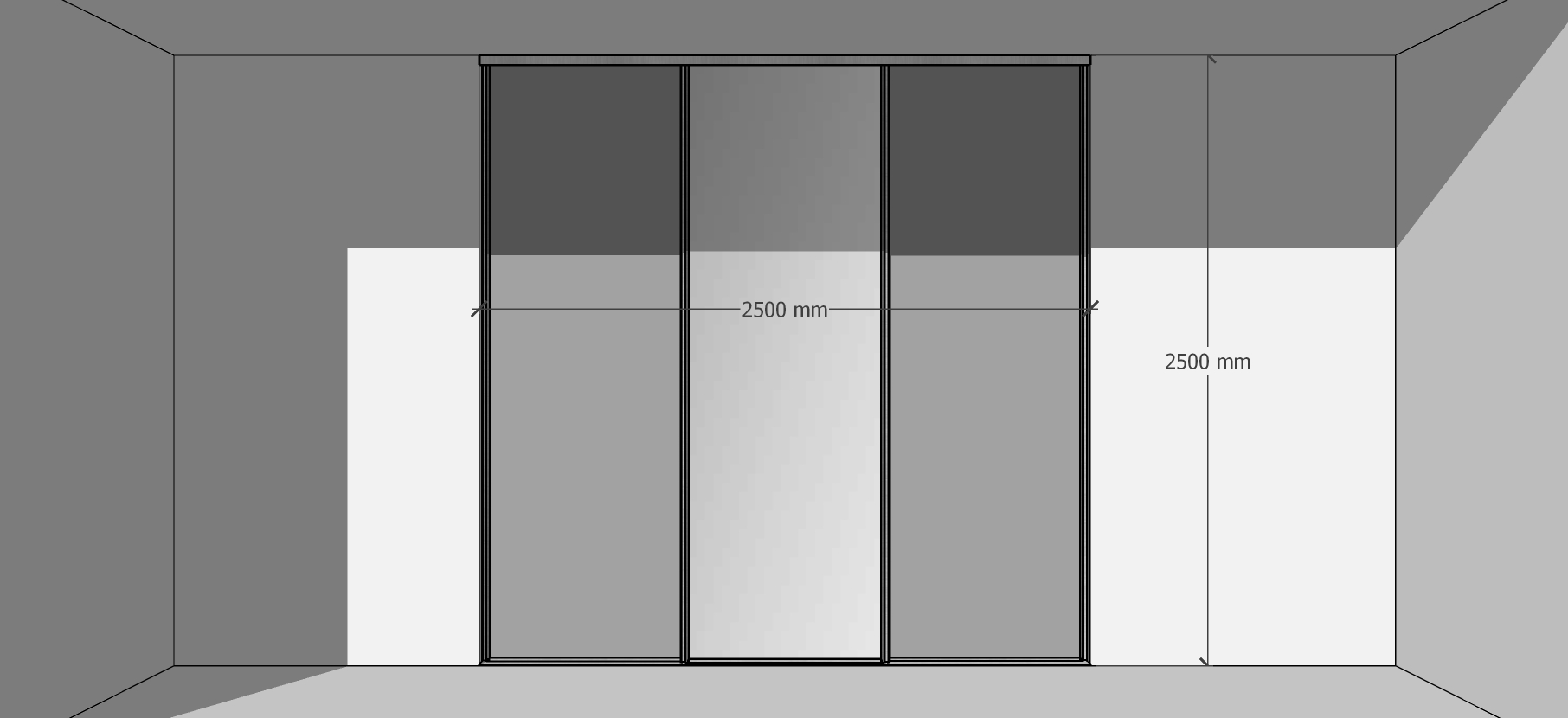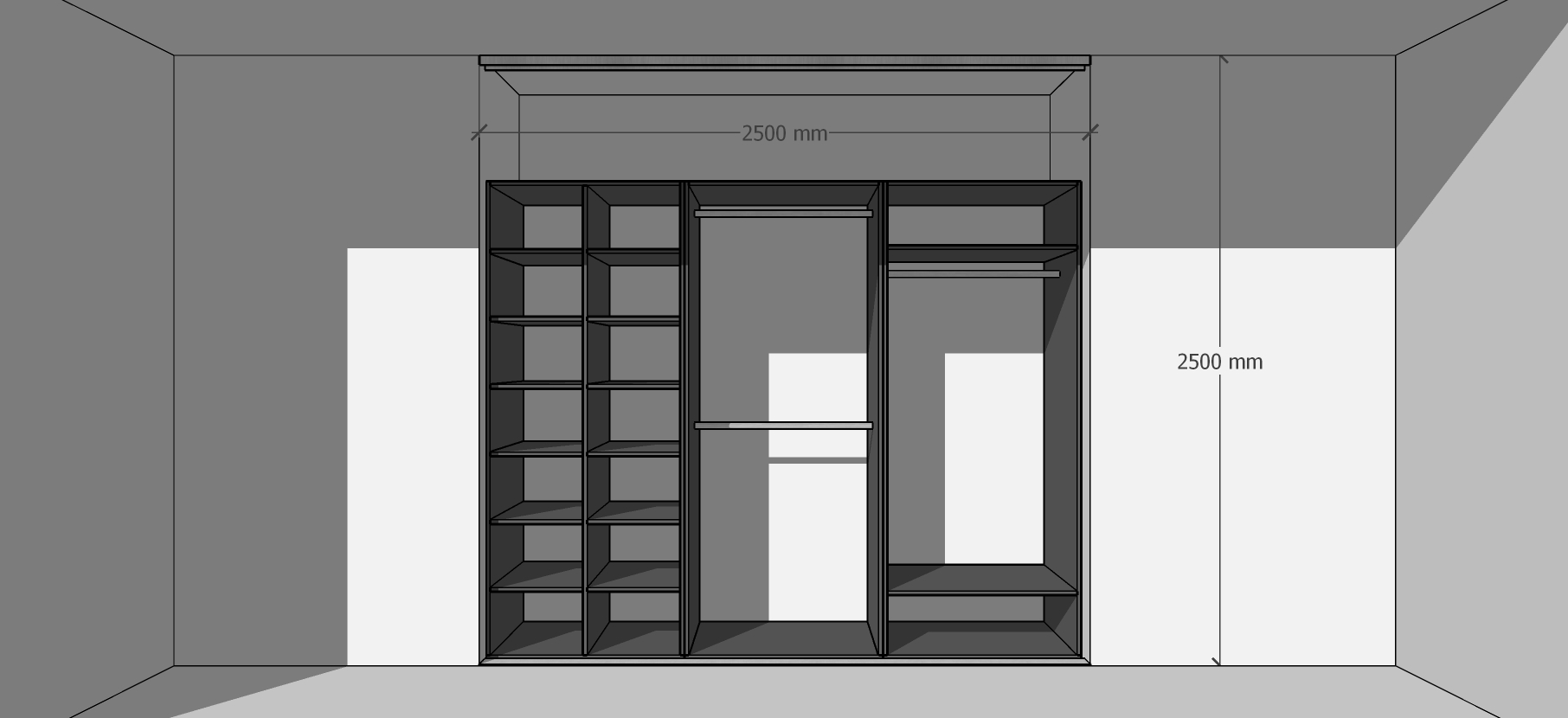 - Skapja un durvju platums: 250 cm