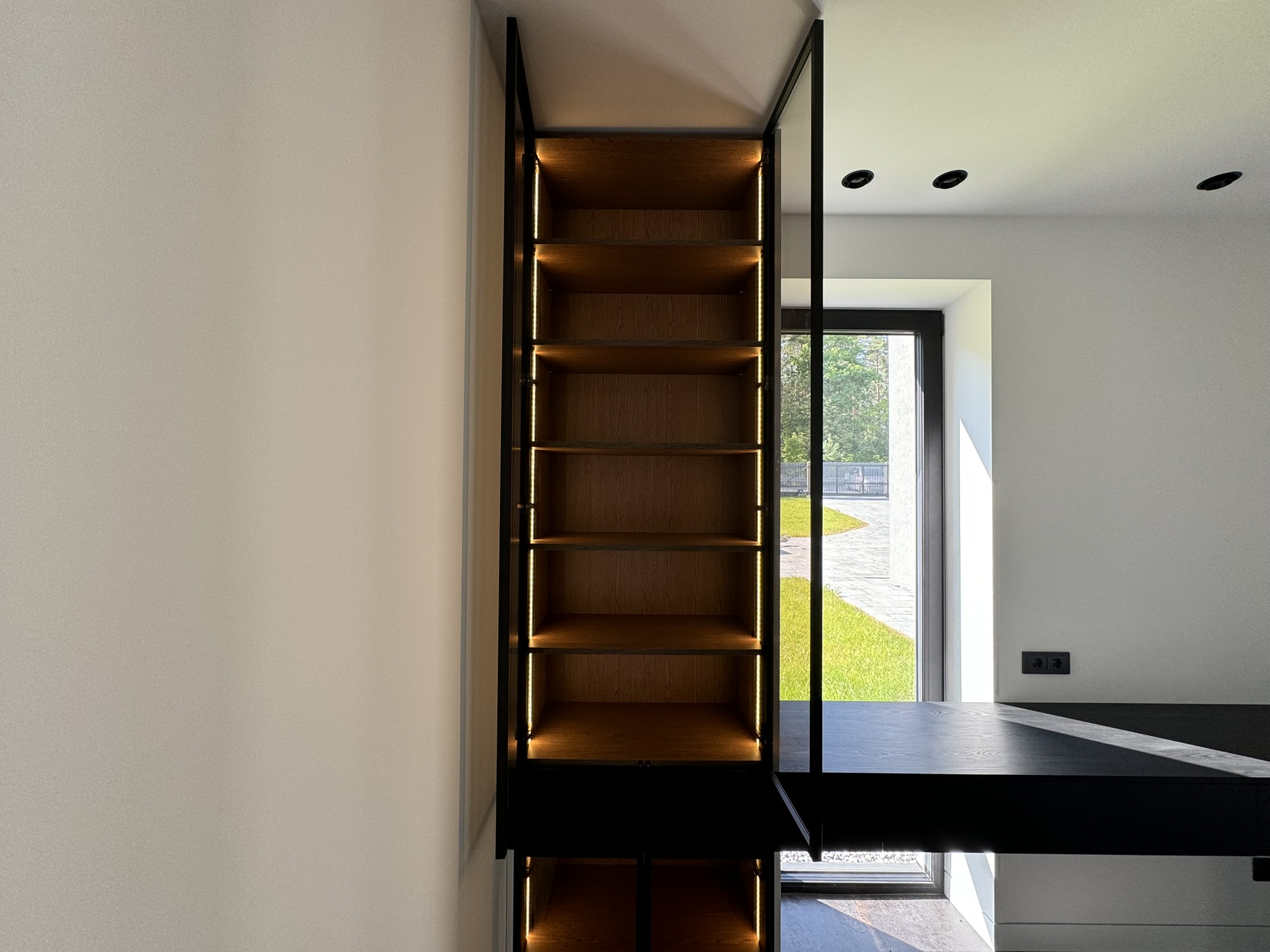 - Vitrīnas durvju fasādes no AMFLEX melns alumīnija rāmis 161, tumši tonēts stikls.